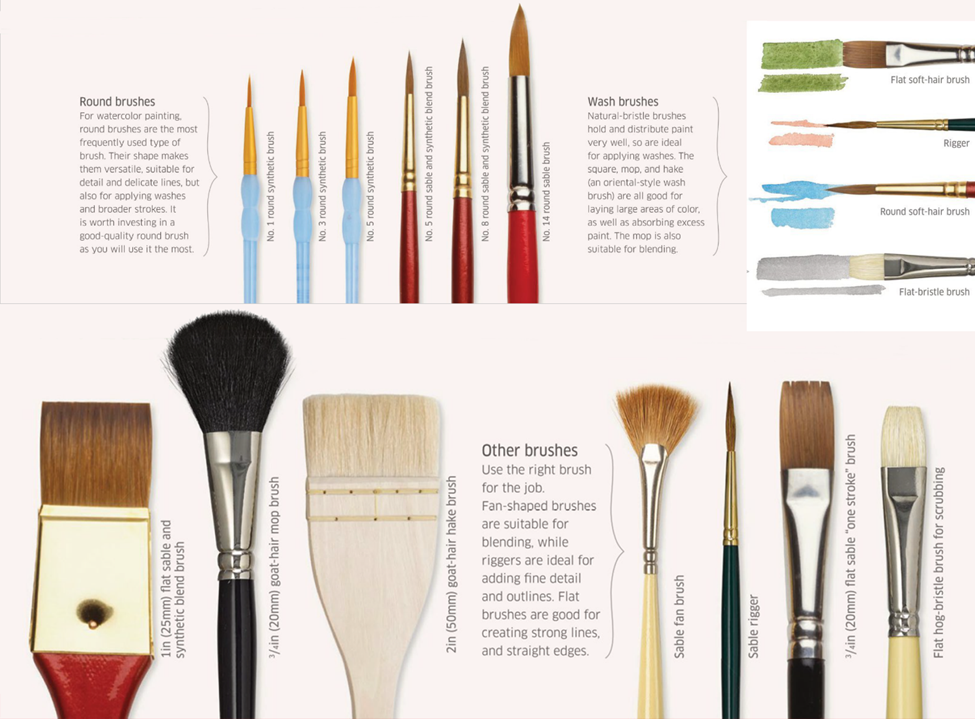 Different type and size of brushes. Source: Dorling Kindersley, Artist’s Painting Techniques: Step-By-Step Workshops from professional artists, DK, New York, 2016.
