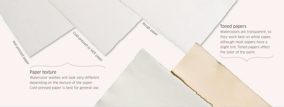 Different type of papers and textures used as support for watercolors. Source: Dorling Kindersley, Artist’s Painting Techniques: Step-By-Step Workshops from professional artists, DK, New York, 2016.
