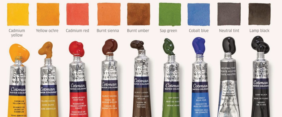 Classical watercolor tube paints by Winsor & Newton. Source: Dorling Kindersley, Artist’s Painting Techniques: Step-By-Step Workshops from professional artists, DK, New York, 2016.